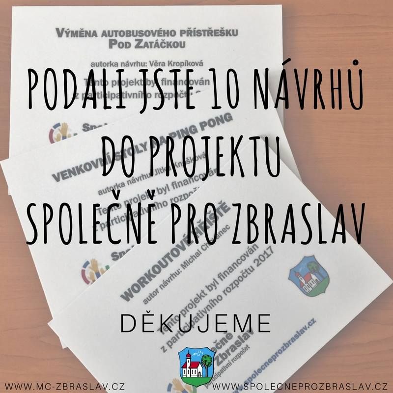 Samotné volební strany nebo zastupitelstvo nezmůžou nic bez podpory, nápadů a zapojení vás, občanů. S vaší pomocí se Zbraslav pohnula, proměnila, ožila. Děkujeme všem, kteří v tom jsou s námi. Prosíme, pojďme pokračovat společně!